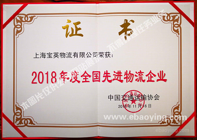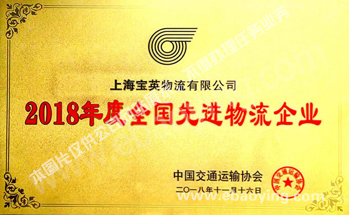 2018年度全國先進(jìn)物流企業(yè)牌匾