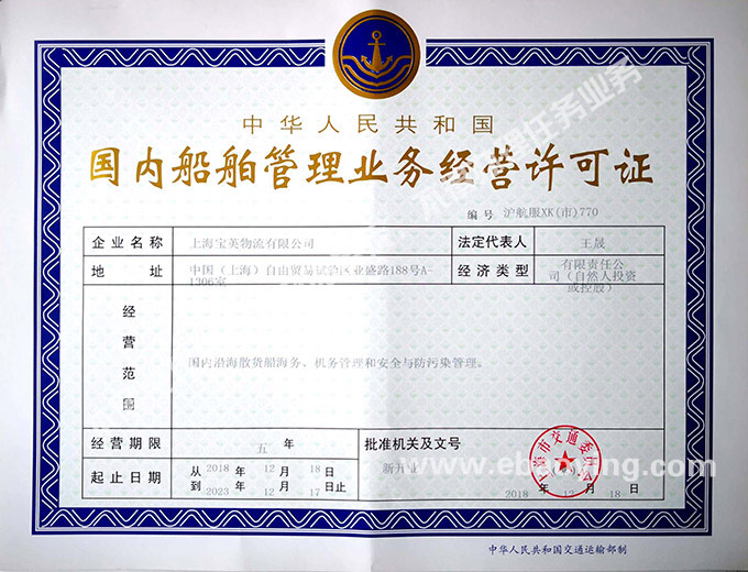國內(nèi)船舶管理業(yè)務(wù)經(jīng)營許可證