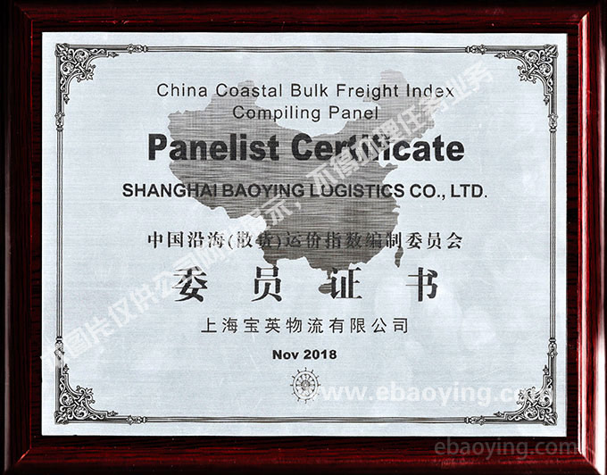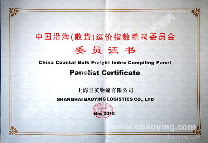 中國沿海(散貨)運(yùn)價(jià)指數(shù)編制委員會(huì)委員證證書