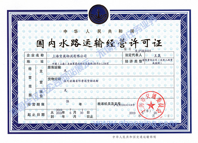 國內(nèi)水路運(yùn)輸經(jīng)營許可證