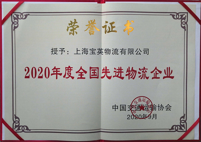 2020年9月14日下午,中國(guó)交通運(yùn)輸協(xié)會(huì)下發(fā)了“中交協(xié)秘字﹝2020﹞44號(hào)《中國(guó)交通運(yùn)輸協(xié)會(huì)關(guān)于公布2020年度全國(guó)先進(jìn)物流企業(yè)評(píng)選結(jié)果的通知》”,上海寶英物流有限公司等229家企業(yè)在物流服務(wù)、技術(shù)及管理方面符合國(guó)家對(duì)物流行業(yè)倡導(dǎo)的發(fā)展方向和政策要求,相關(guān)指標(biāo)達(dá)到同時(shí)期國(guó)內(nèi)先進(jìn)水平,入選為“2020年度全國(guó)先進(jìn)物流企業(yè)”