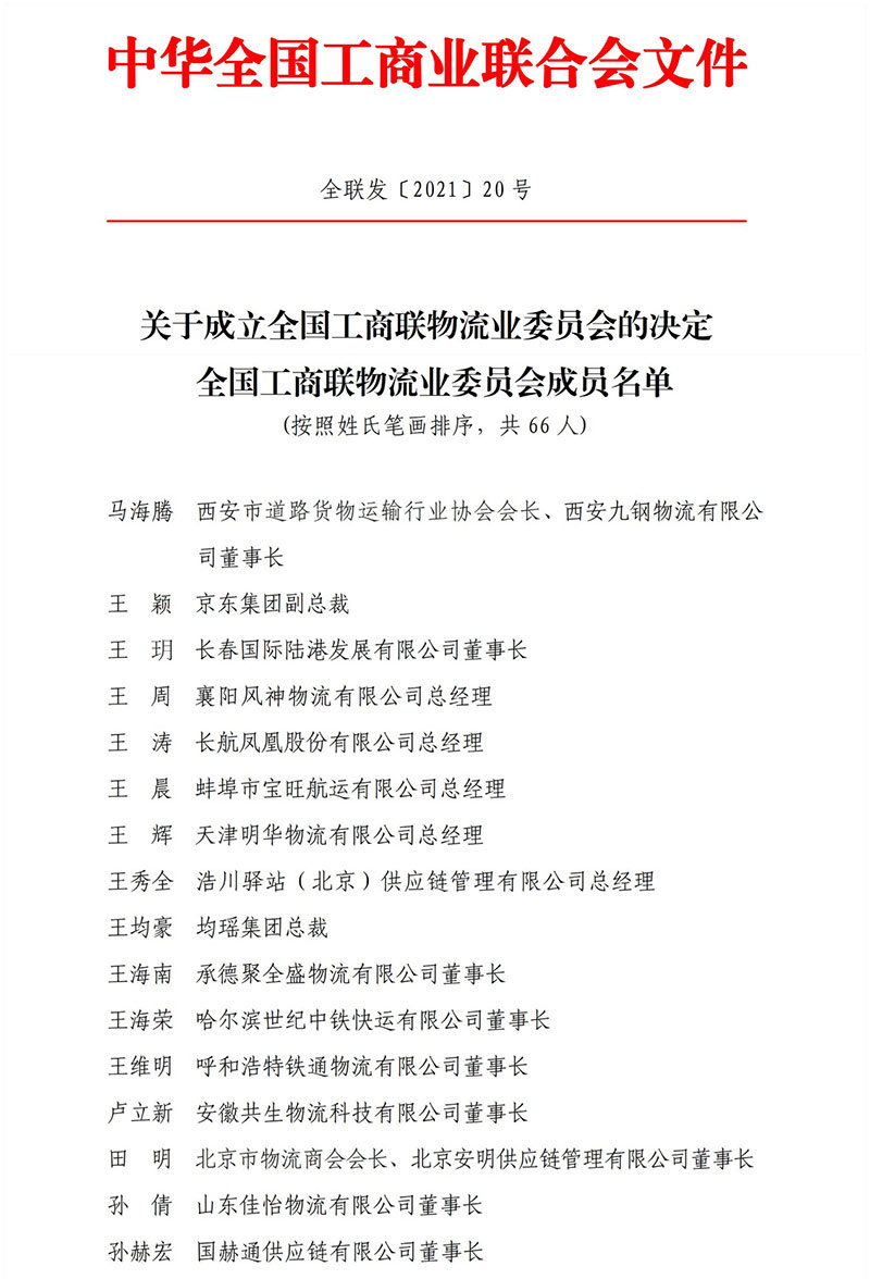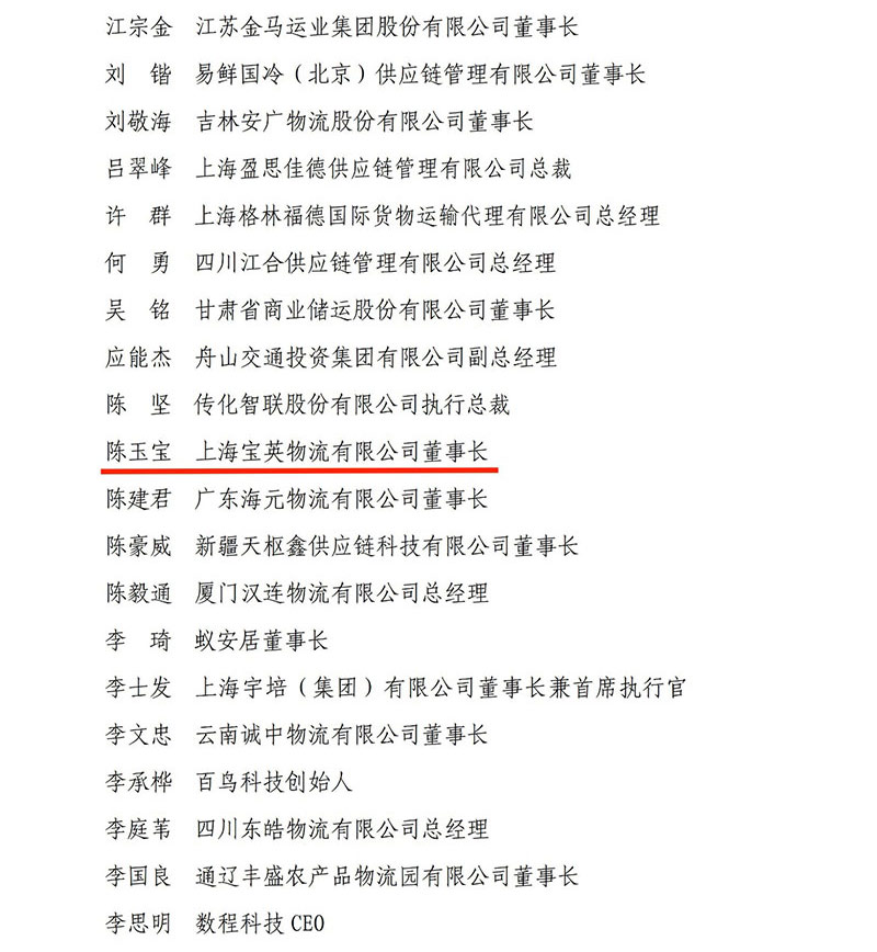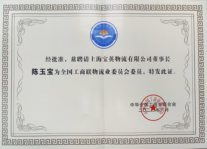2022年1月17日上午,全國工商聯(lián)物流業(yè)委員會采取線上線下相結合的方式召開啟動會,全國工商聯(lián)黨組副書記、副主席樊友山出席并講話,黨組成員、秘書長趙德江主持。上海寶英物流有限公司董事長陳玉寶當選為委員會委員。