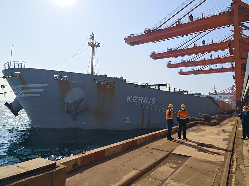 首次靠泊船舶KERKIS“科奇斯”輪由上海寶英物流有限公司代理,滿載173691噸鐵礦砂,靠泊防城港新啟用#401泊位卸貨。此次靠泊對(duì)防城港以及上海寶英物流后續(xù)業(yè)務(wù)開展具有深遠(yuǎn)意義。