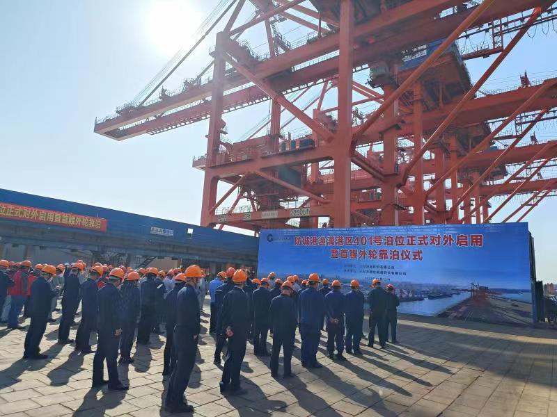 2022年12月13日上午10時(shí)30分,防城港漁澫港區(qū)401泊位正式對(duì)外啟用暨首艘外輪靠泊儀式舉行,參加儀式人員防城港市長(zhǎng):黃江;防城港碼頭董事長(zhǎng):蘇遠(yuǎn)輝;商務(wù)副總:陳煒;上海寶英物流有限公司相關(guān)人員,以及其他相關(guān)口岸單位。